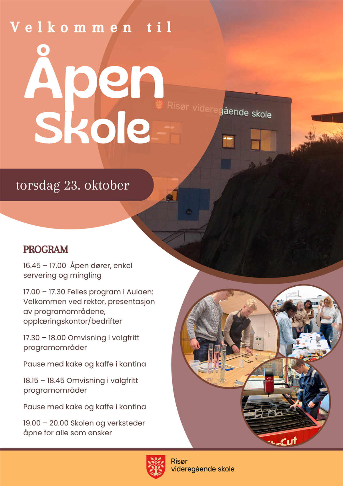 Er du nysgjerrig på hva Risør videregående skole har å tilby? Vi ønsker deg og dine foresatte hjertelig velkommen til Åpen skole torsdag den 23. oktober fra kl. 17.00 til 20.00.